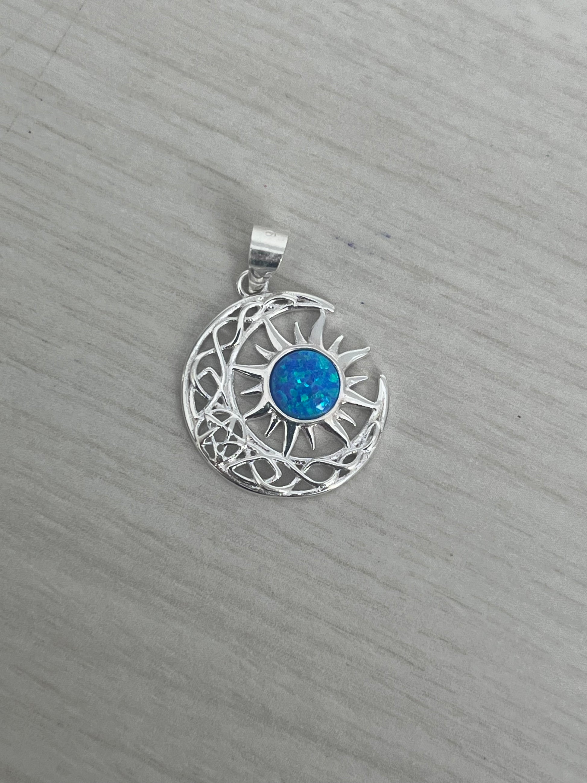 Dije Luna y Sol Piedra Tornasol 1,8cm Plata 925