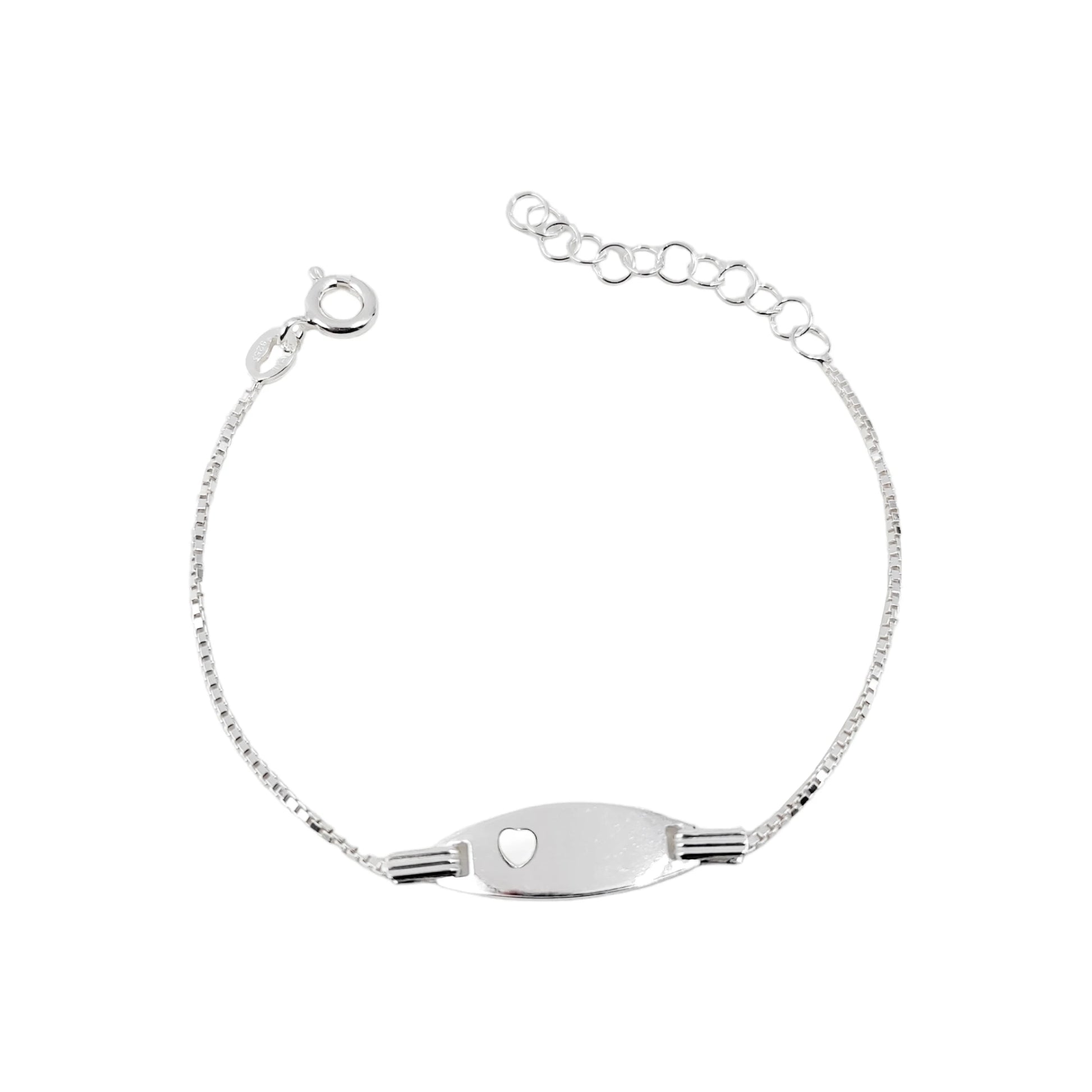Esclava Tejido Veneciana Placa Ovalada Corazón 15cm Ajustable - Plata 925