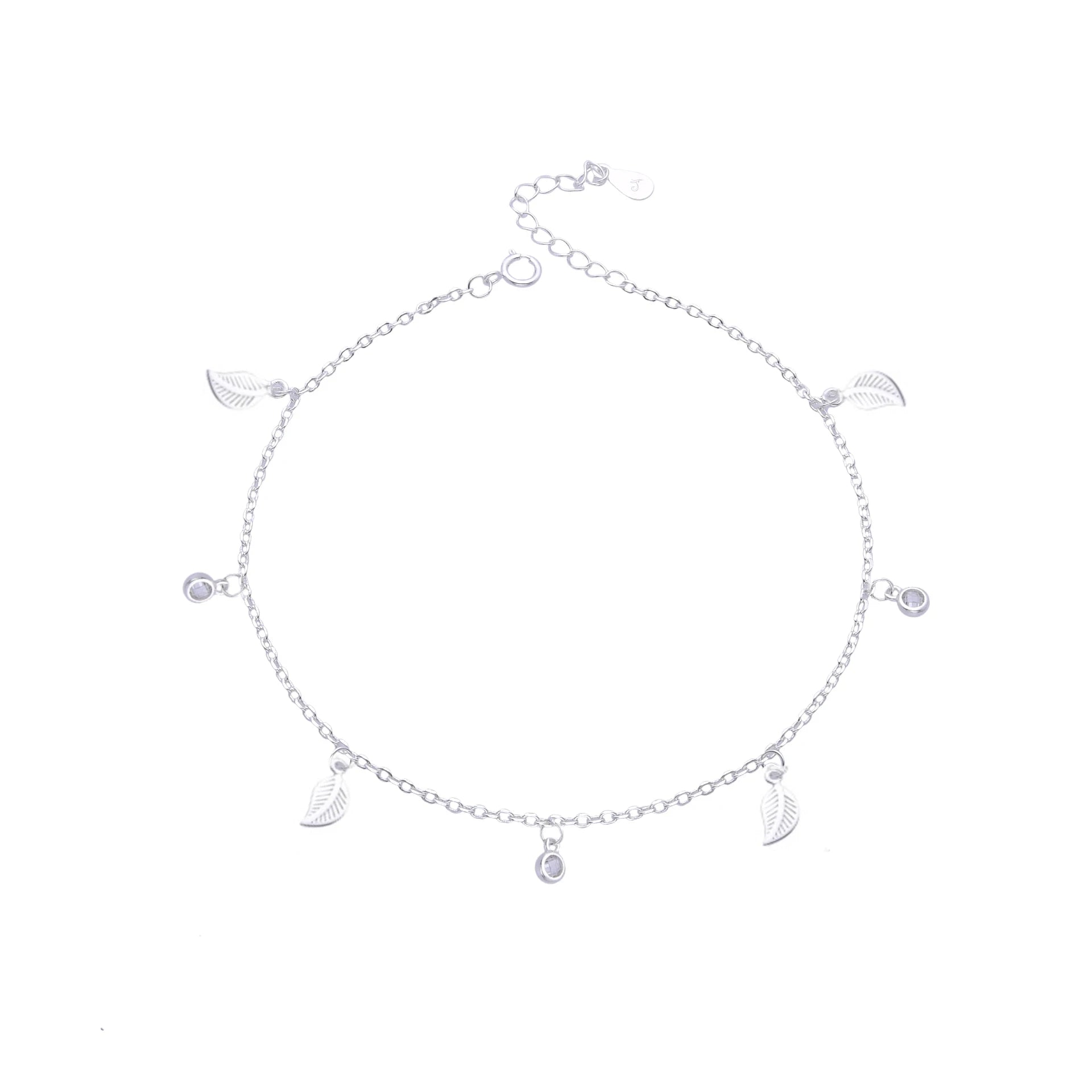 Tobillera Dijes de Hojas y Punto de Luz 25cm Ajustable - Plata 925