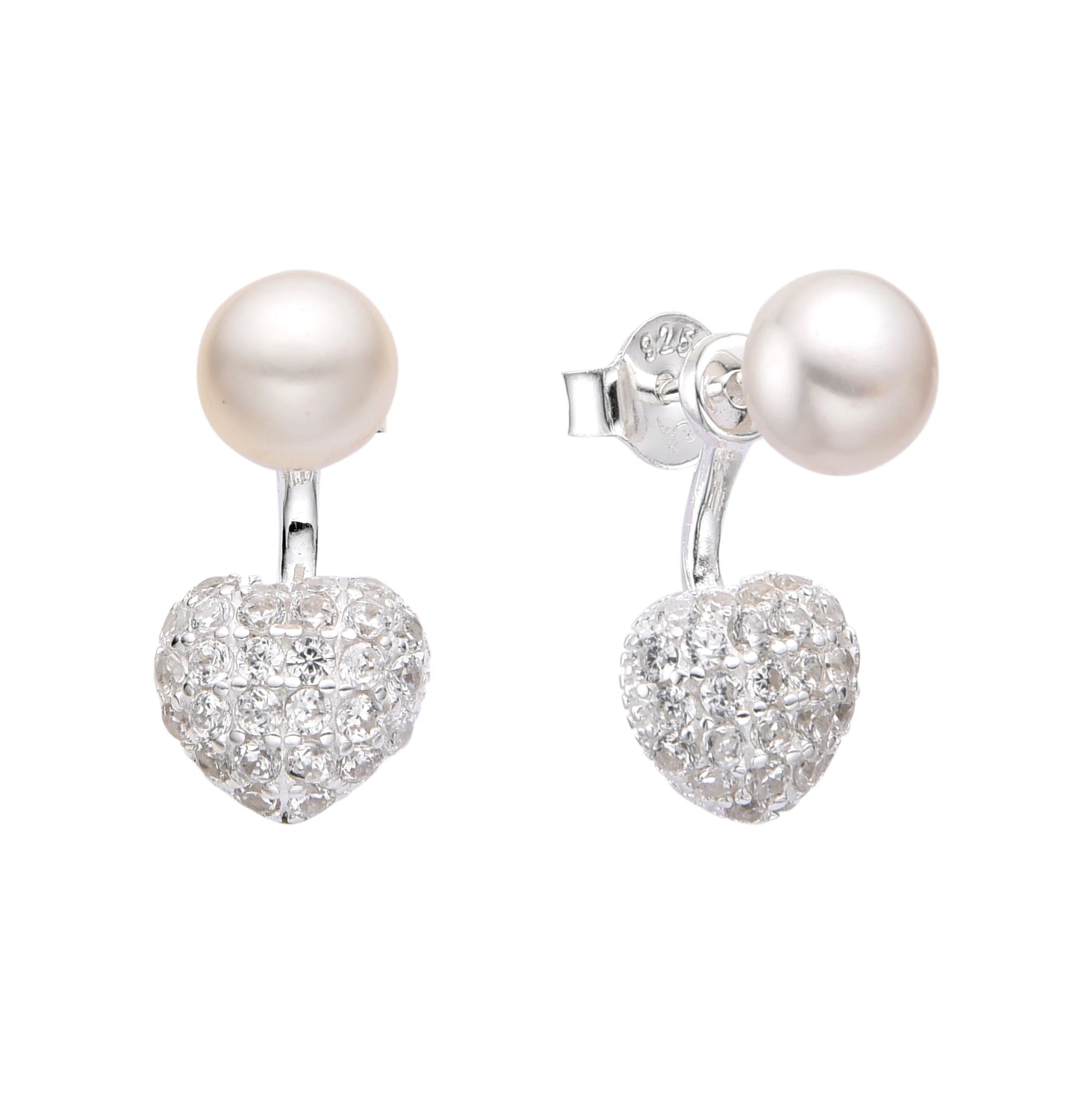 Zarcillos Perlas y Corazón Brillante Plata 925